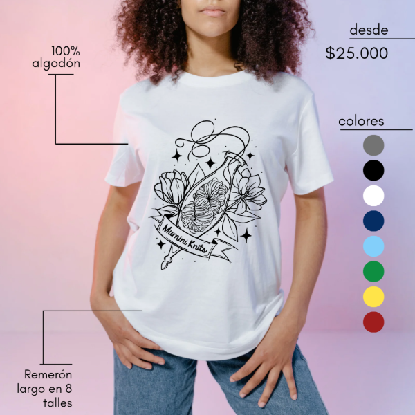 Los colores disponibles son los de la foto teniendo las remeras blanca, gris melange, celeste, roja y amarilla, estampa negra y las remeras negra, azul marino y verde Benetton, estampa blanca.